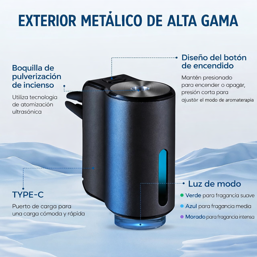 Difusor inteligente para auto que elimina malos olores y mantiene un aroma fresco y equilibrado durante cada trayecto.